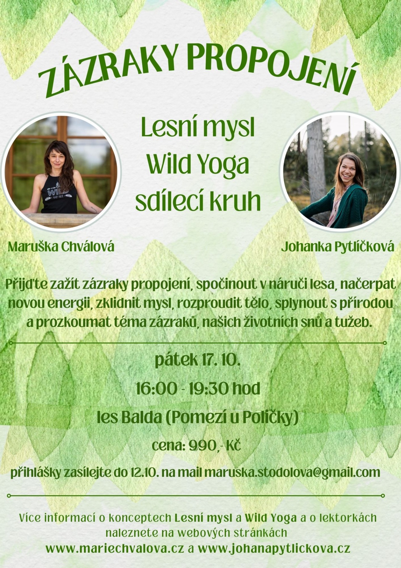 Veškeré informace týkající se mých nadcházejících i uplynulých aktivit naleznete primárně na instagramovém profilu @s_prirodou_k_sobe, případně na Facebooku LESs Stress Centrum.